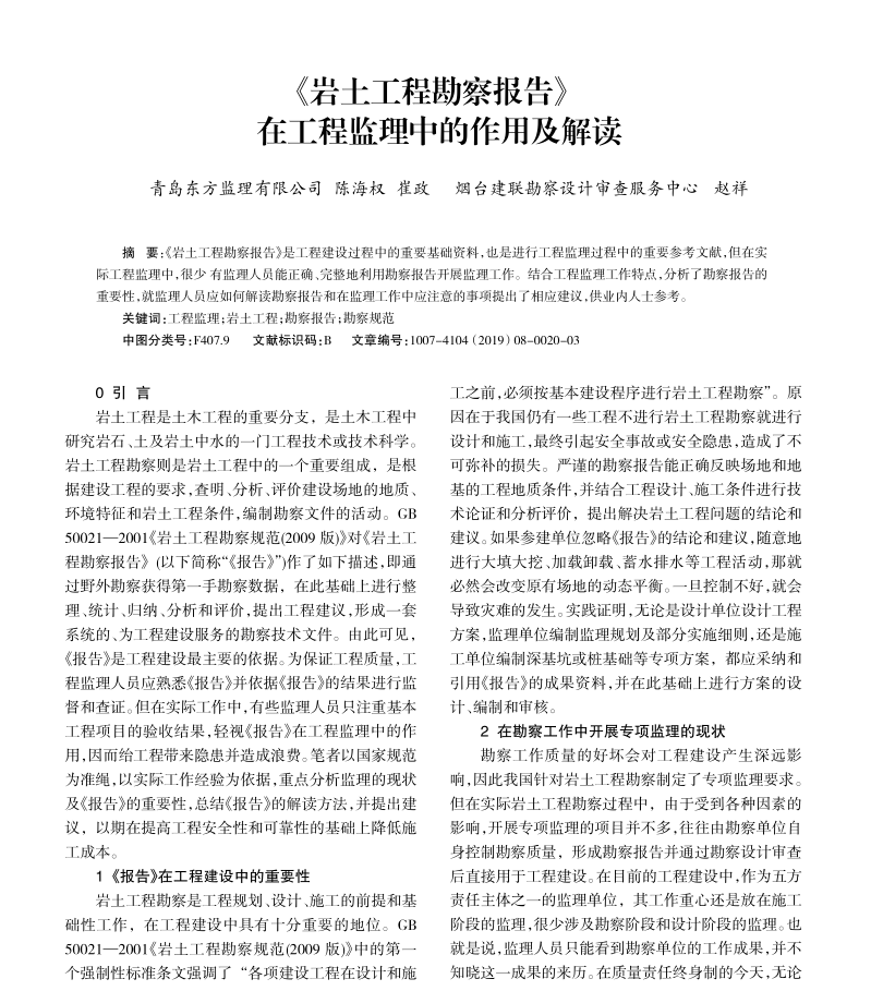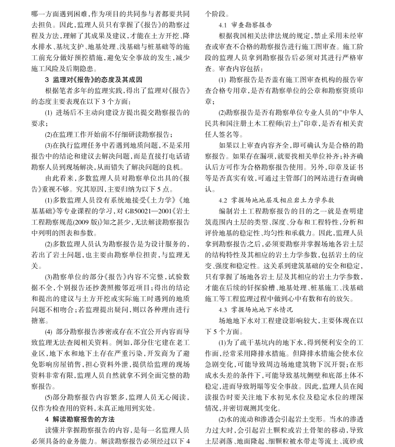 《岩土工程勘察报告》在工程监理中的作用及解读