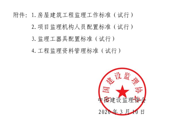 中国建设监理协会关于印发《房屋建筑工程监理工作标准(试行)》等四个标准的通知