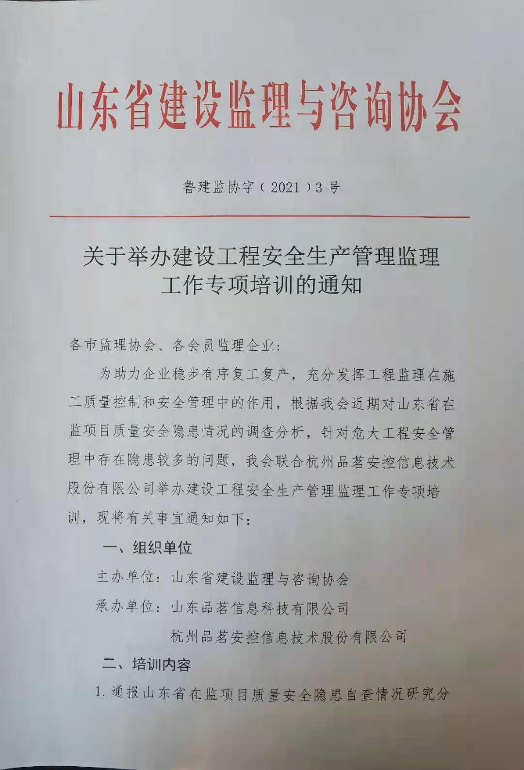 关于举办建设工程安全生产管理监理工作专项培训的通知