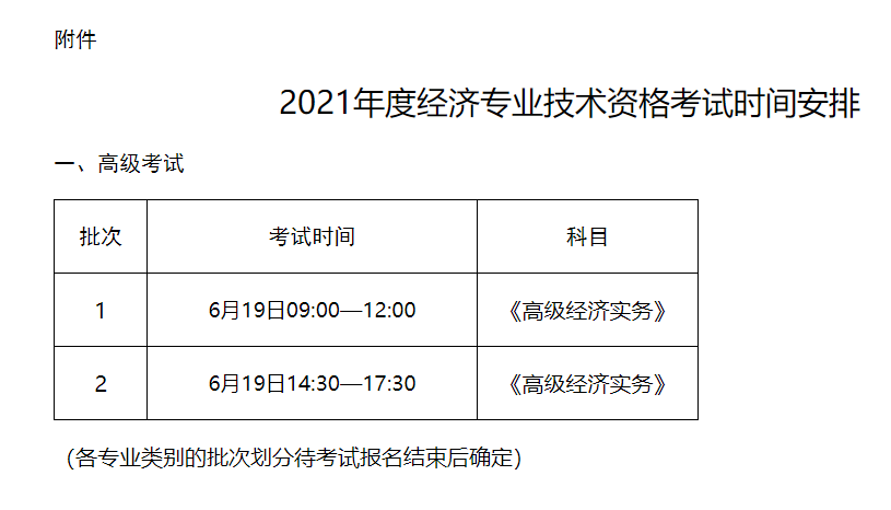 高级考试于6月19日举行,分上、下午2个批次在1天内实施(附件)。各专业类别具体考试时间和批次划分视报名情况另行确定。